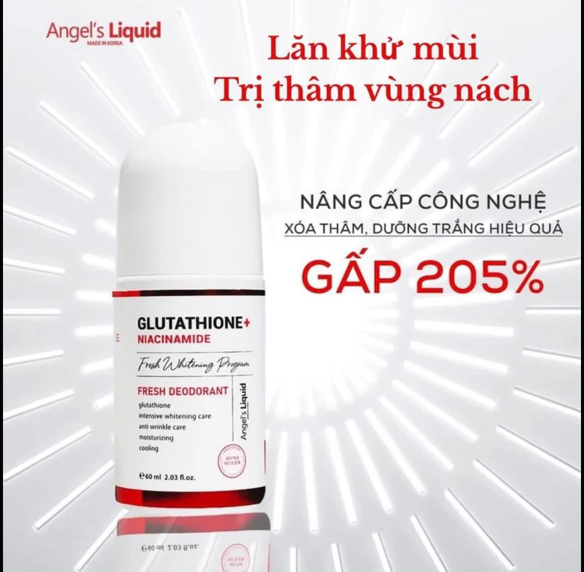 - Lăn Khử Mùi Angel's Liquid với công thức đột phá giúp ngăn ngừa tiết mồ hôi nách, giữ cho vùng da dưới cánh tay luôn khô ráo, sạch sẽ.