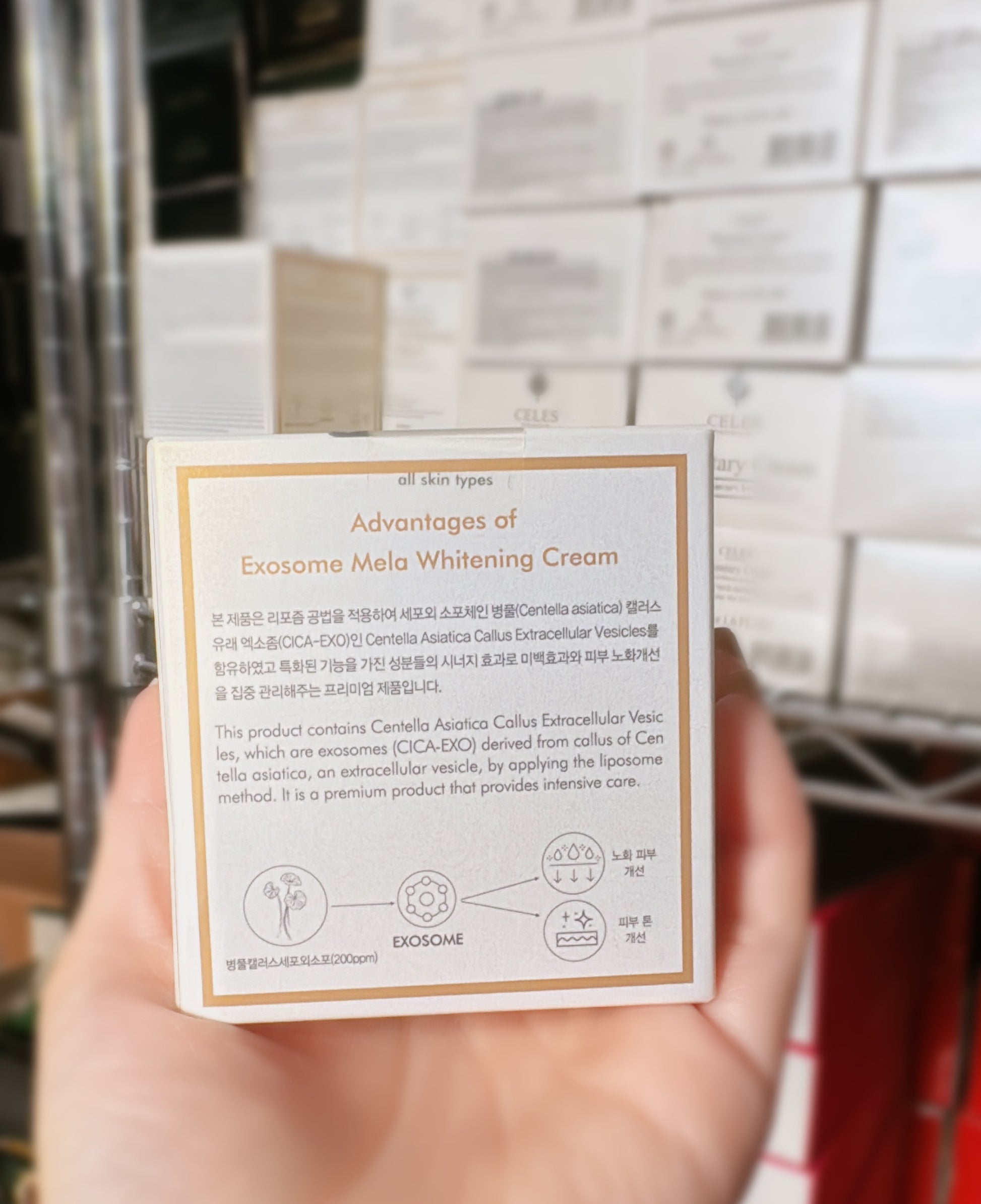 - Kem dưỡng trắng da Exosome Mela Whitening Cream giúp đẩy lùi lão hoá, xoá nhăn, thâm nám, đồi mồi, tàn nhang, dưỡng da căng bóng, tươi trẻ