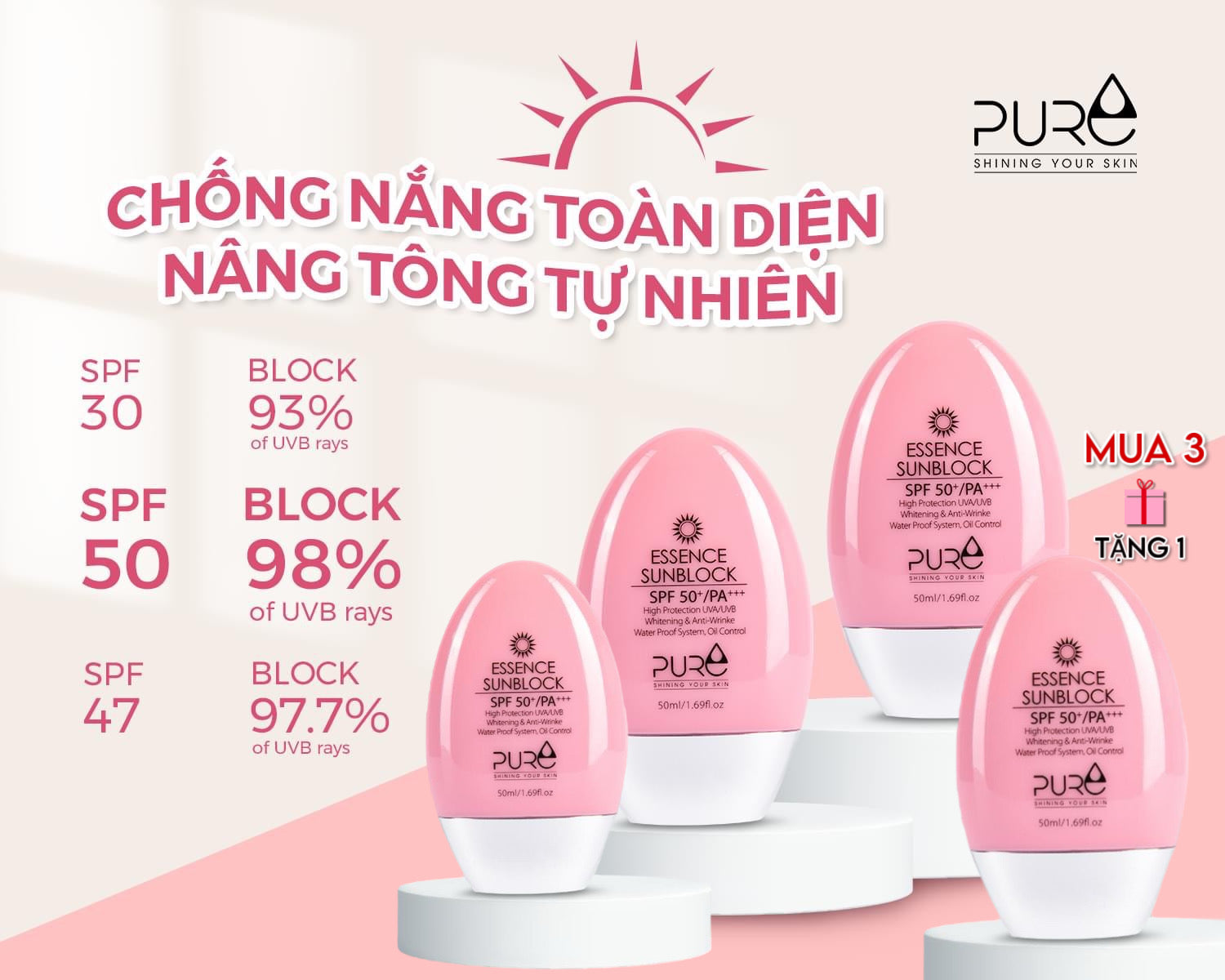 Siêu phẩm chống nắng PURE mang lại hiệu quả chống nắng suốt cả ngày, ngăn chặn hoàn toàn các tia cực tím gây hại cho da. Với tính chất sữa giúp thấm sau vào da chỉ trong 2s, làm cho da bạn căng bóng trắng hồng gần ngay lập tức. Giảm bóng nhờn và kiềm dầu hiệu quả, phù hợp với mọi loại da.