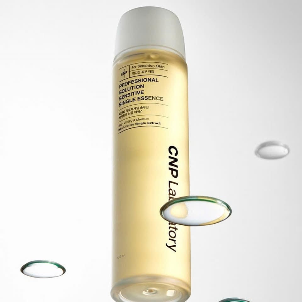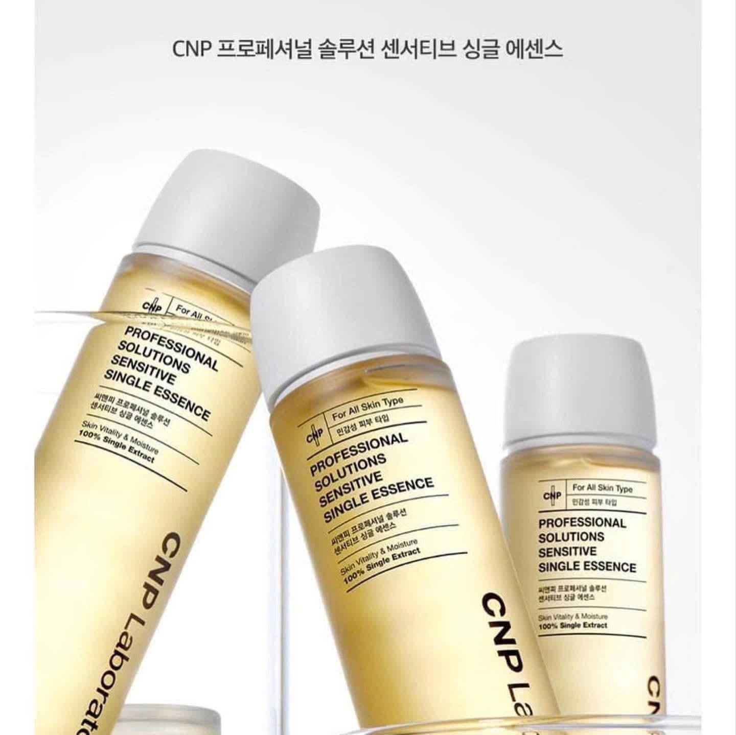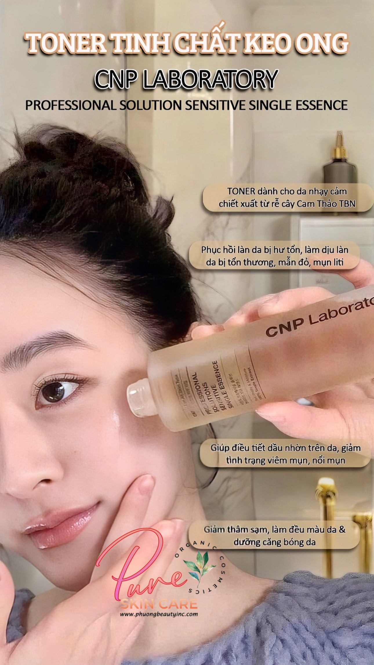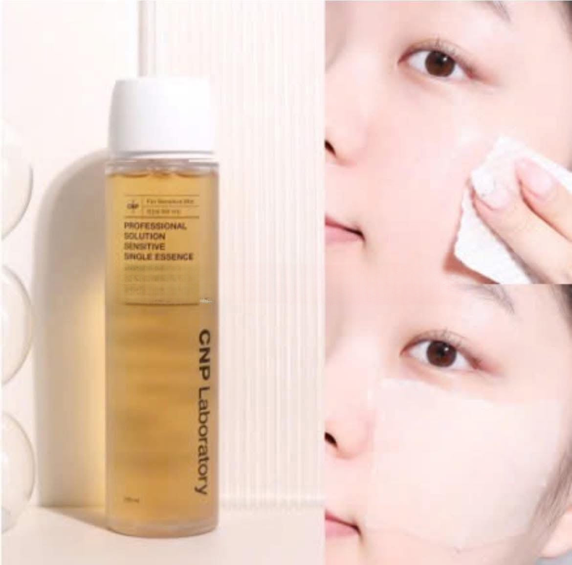 Nước hoa hồng cho da nhạy cảm CNP Laboratory Professional Sensitive Single Essence : không còn cảm giác dư ẩm , không lo kích ứng lên mụn . Vẫn là Toner keo ong giúp phục hồi da yếu , da đang bị tổn thương , sỉn màu